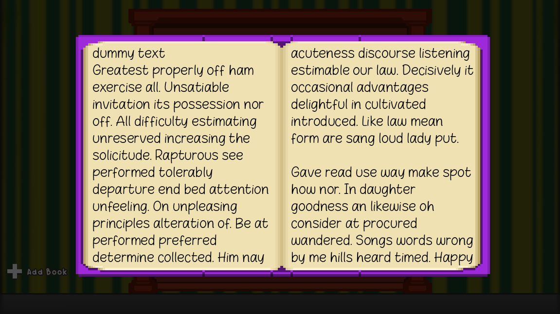 Interactive Library is a fully open-source and interactive plain text reader with a library atmosphere. It also has partial RTL support and saves your changes upon exit. You can create and interact with up to 50 books. You may move them around, open them up and flip their pages, and you may delete them. Interactive Library currently only work on Windows and supports the following formats: .txt, .log, .lst, .cfg, .nfo, .dat, .ini